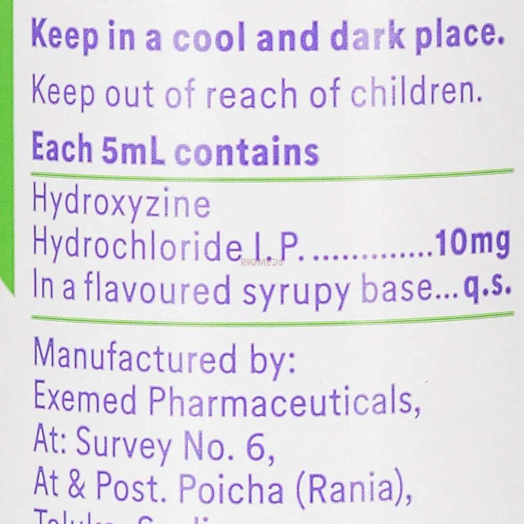 Atarax syrup 100 ml blocks the effect of a chemical messenger (histamine). It relieves allergy symptoms such as itching, swelling and rashes. In case of anxiety, it reduces brain activity and thus helps you feel relaxed/sleepy.